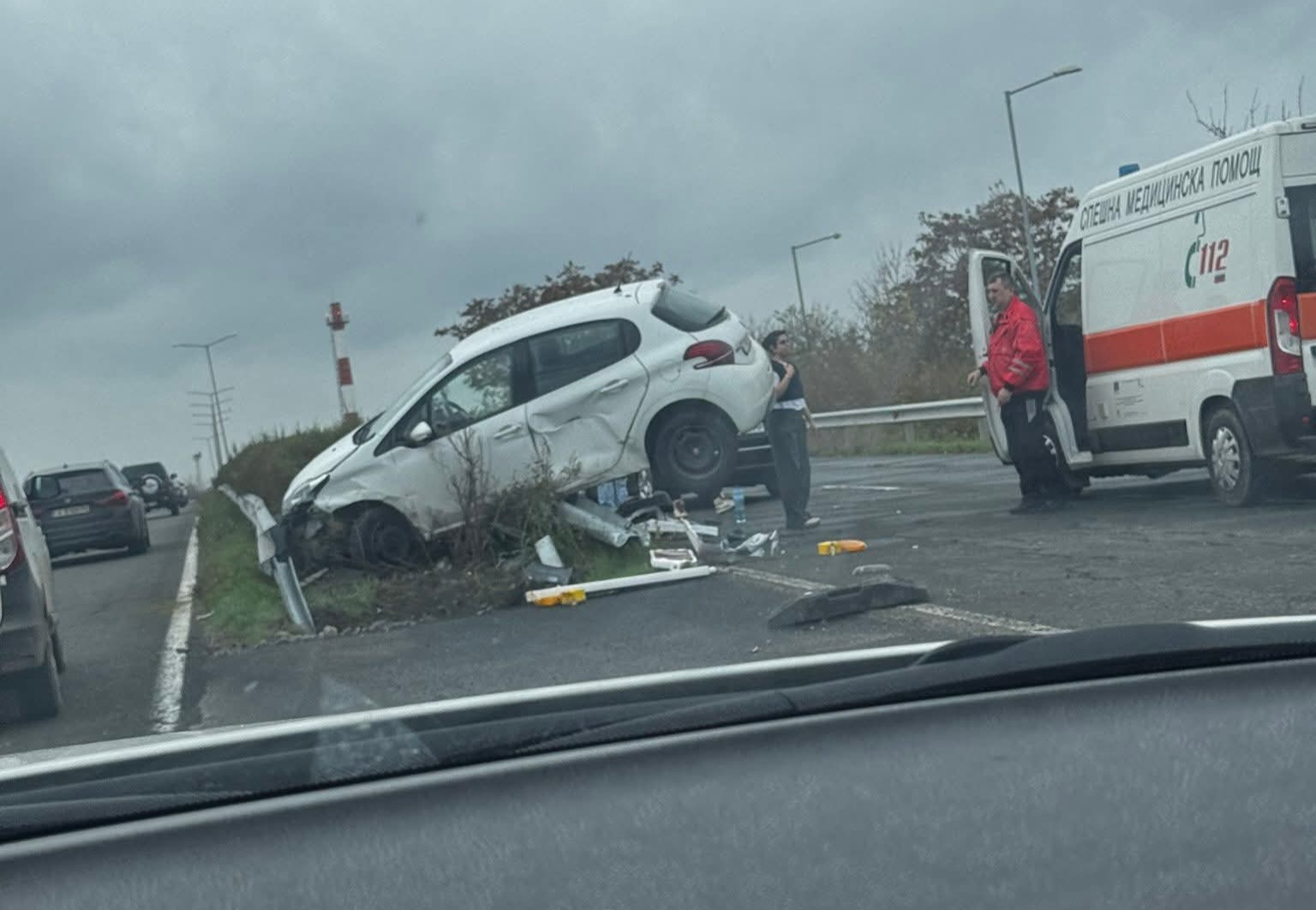 Зрелищна  катастрофа по пътя Сарофово- Бургас, в лентата за Бургас. „Пежо“, управлявано от 24 годишна старозагорка самокатастрофира и се оказа върху мантинелата. Въпреки това и за щастие пострадали няма.Инцидентът е от тази сутрин, станал е в 9.34 часа.